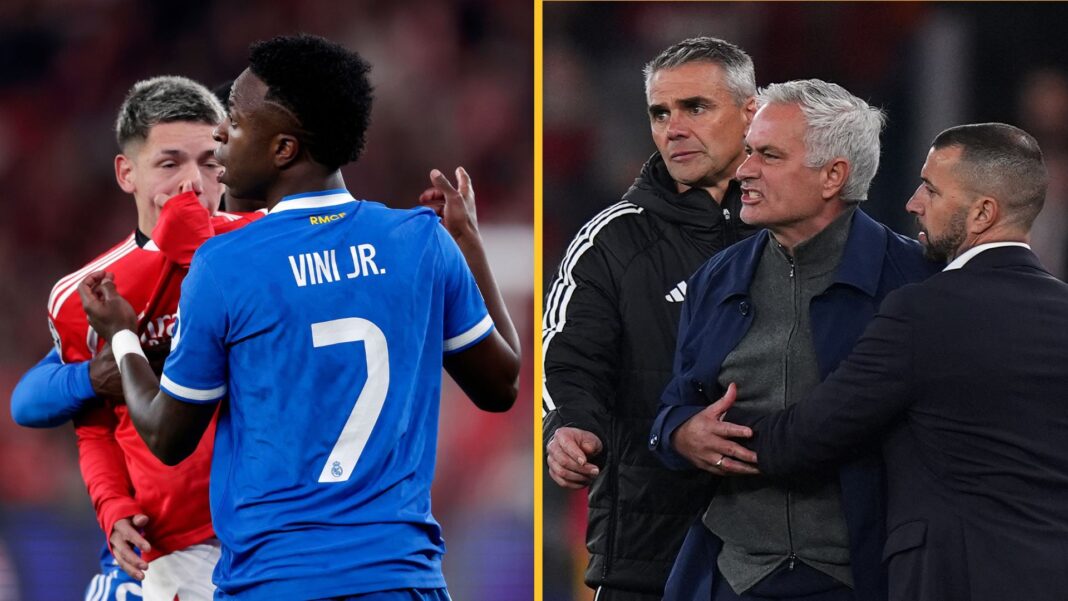 Jose Mourinho and Benfica are being heavily criticised for seemingly justifying the alleged racism received by Real Madrid’ Vinicius Jr after a night of high drama in the Champions League.